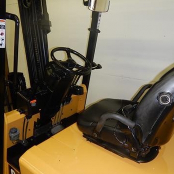 Renta de montacargas Caterpillar E8000, este montacargas se encuentra en excelentes condiciones, tiene una capacidad de carga de 8000 libras y un mástil de tres etapas con una elevación máxima de 4.7 metros, equipado con desplazador lateral, pintura y llantas nuevas, batería de 48 volts, disponible para renta y venta, listo para trabajar en su empresa.