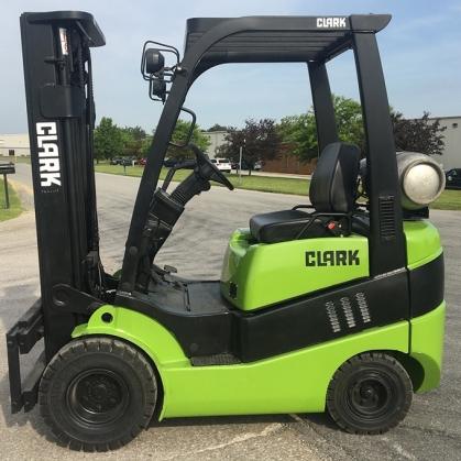 Montacargas reacondicionado Clark 2008, capacidad de carga de 4000 Lbs, mástil de tres etapas con una elevación máxima de 4.7m, equipado con desplazador lateral, en excelentes condiciones, pintura y llantas nuevas. Disponible para renta o venta.