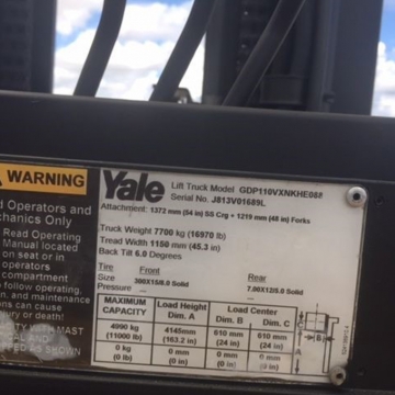 Renta de montacargas Yale, capacidad de carga de 11000 libras, mástil triple con altura máxima de 4 metros, llantas solidas, cuenta con todos sus mantenimientos y pintura nueva, listo para trabajar.